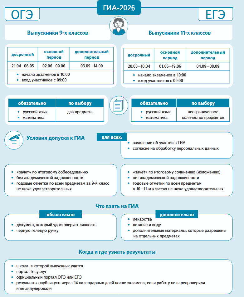 ОГЭ по всем учебным предметам начинается в 10.00 по местному времени.