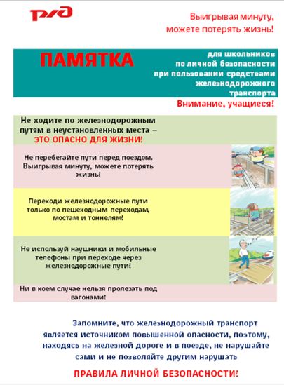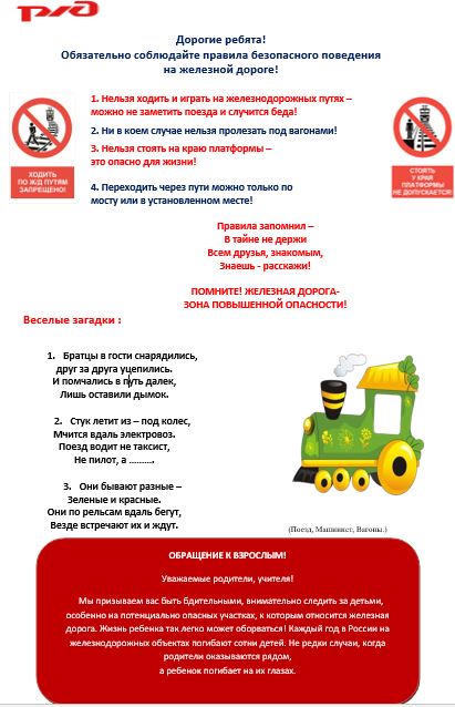 Соблюдение правил безопасности на железной дороге позволит сохранить здоровье и жизнь детей!