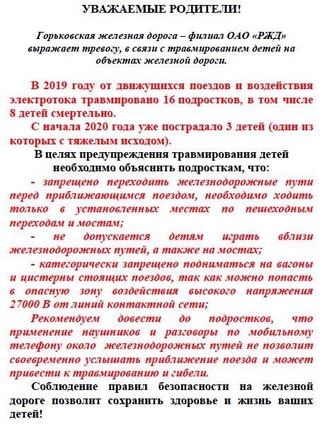 Горьковская железная дорога – филиал ОАО «РЖД» выражает тревогу, в связи с резким ростом гибели и травмирования детей на объектах железной дороги.